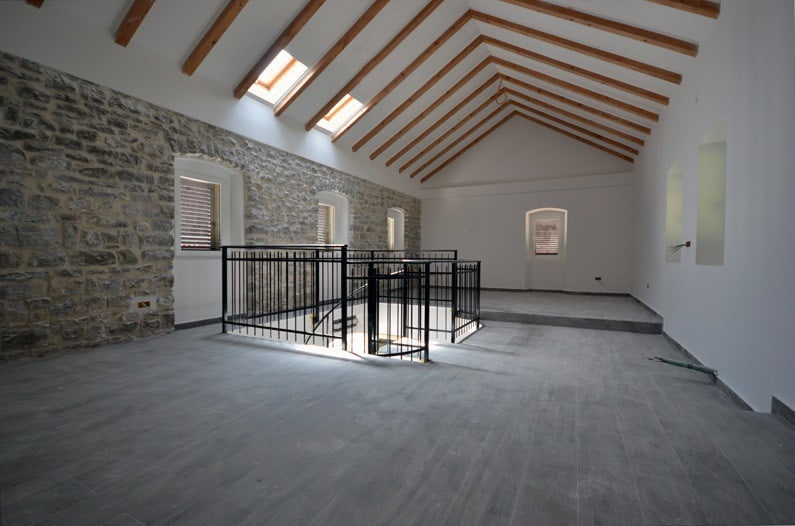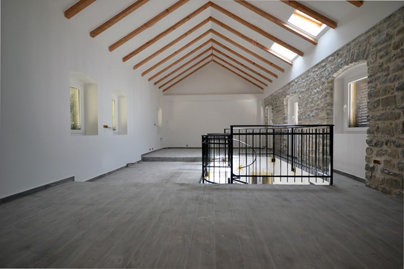 The first object is a two-storey stone house. On the first floor (54m2), there is a living room, kitchen with a dining room, storage and a bathroom. On the second floor (50m2), there are 2 bedrooms and a bathroom. On each floor there is a terrace.