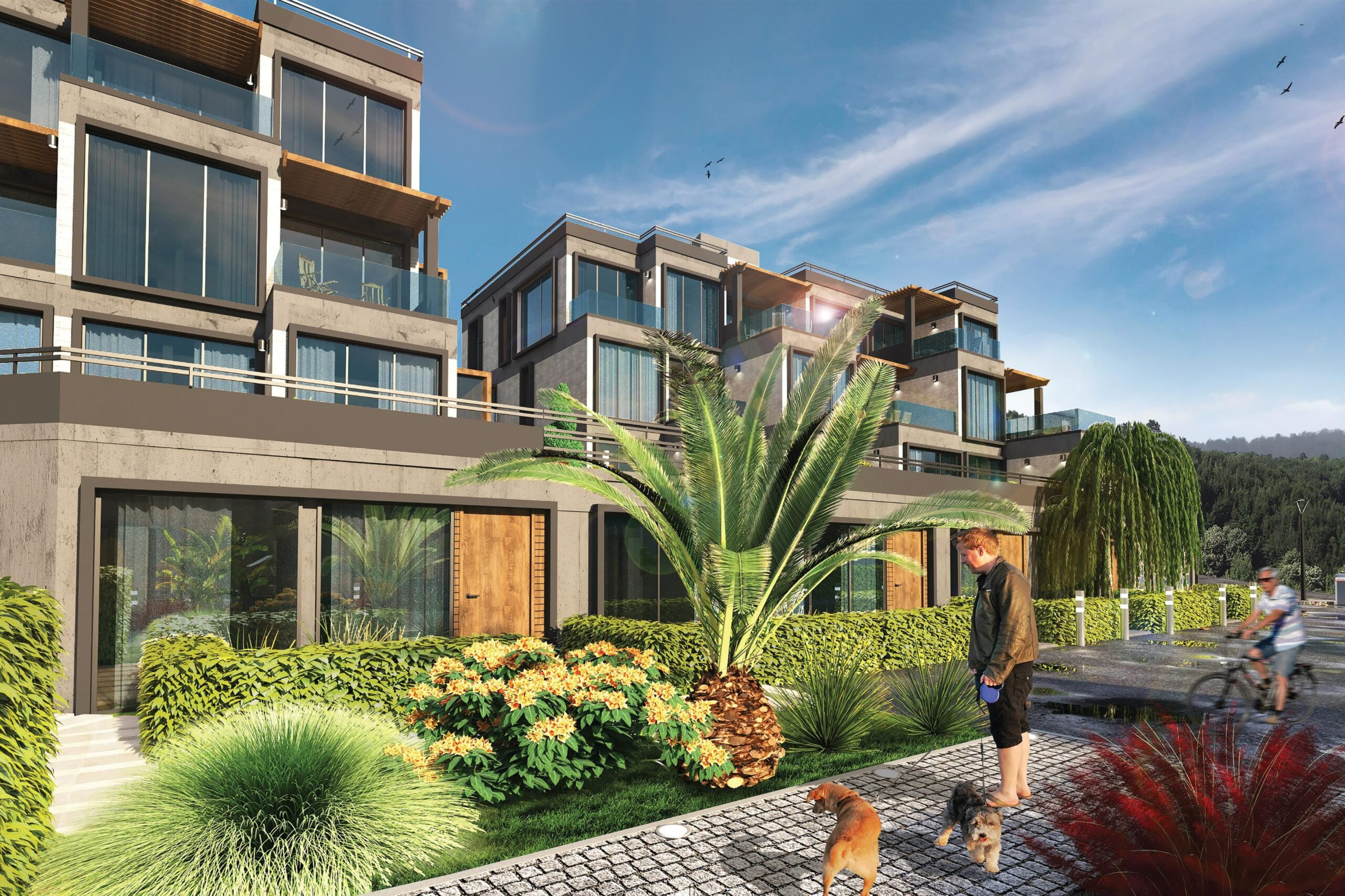 The complex is divided into 4 blocks and in the offer are one-bedroom and two-bedroom apartments.