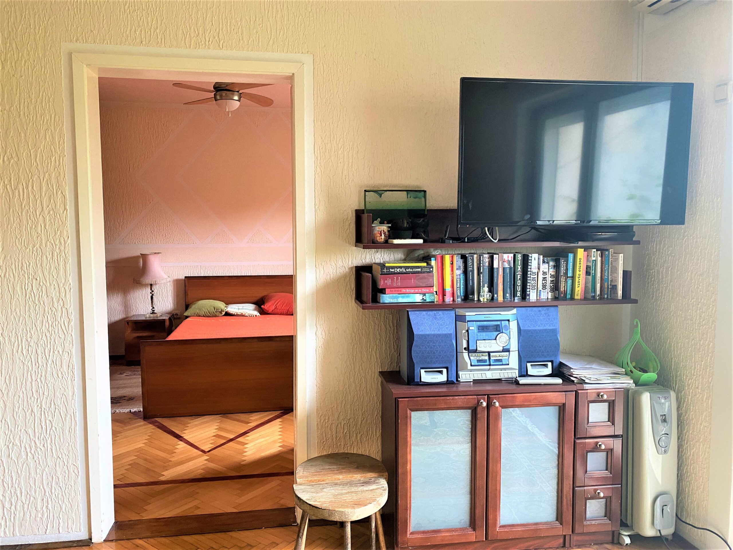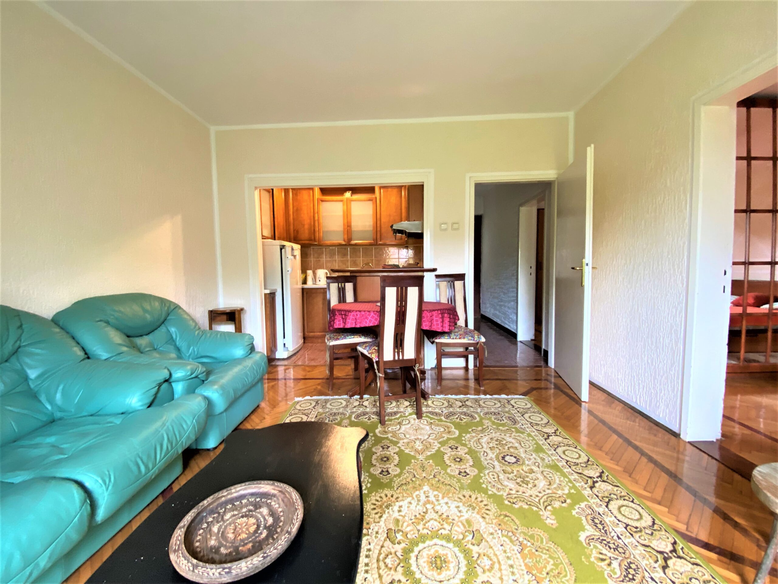 The upper ground floor has a total area of 56 m2 + a terrace of 10 m2 with a yard of approx. 50 m2. It consists of two bedrooms, a kitchen with a living room with a dining area, a hallway and a bathroom.