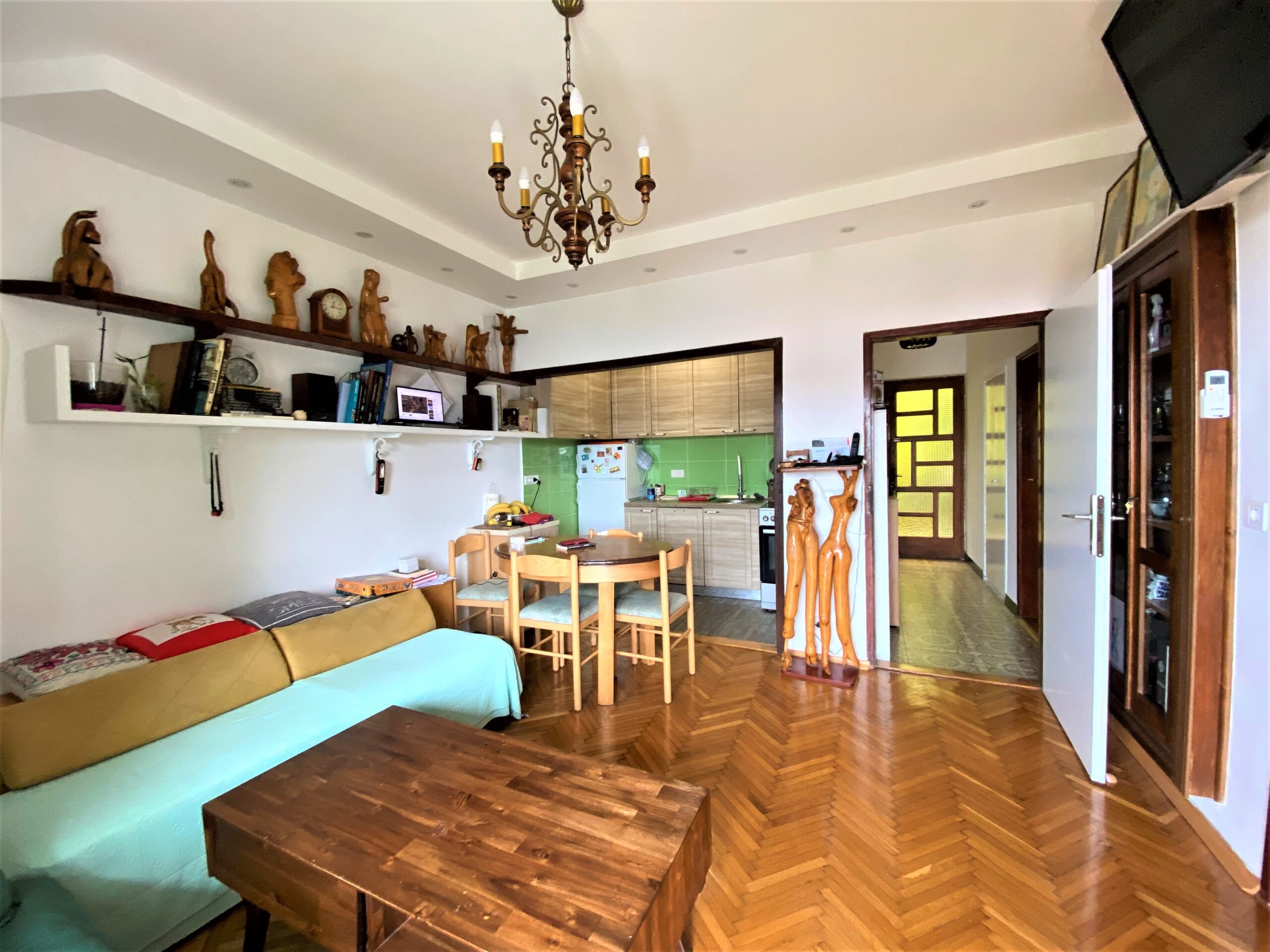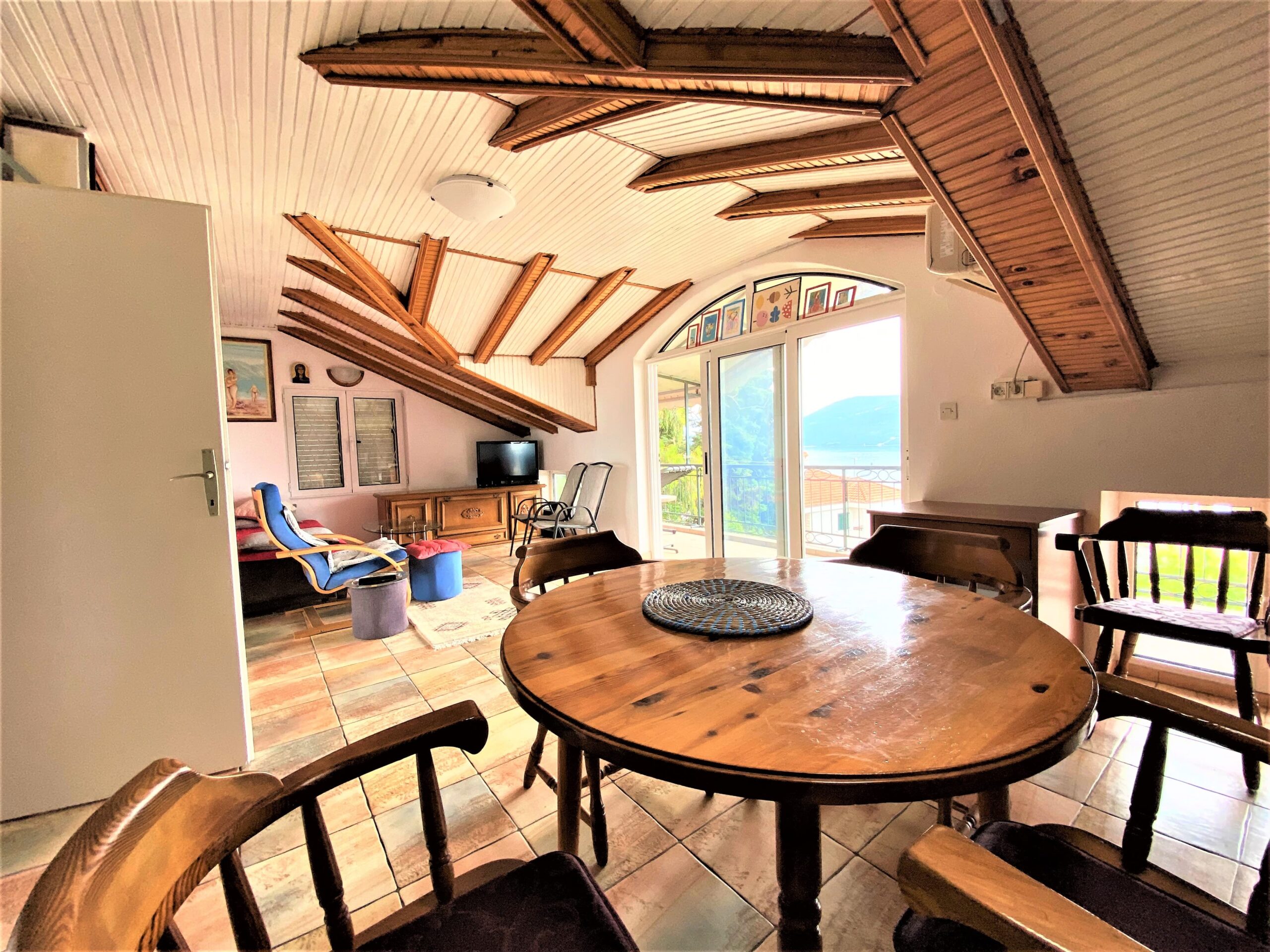 On the second floor, there is a spacious one-room apartment with a total area of 53m2 + 2 terraces, total area of 17m2. It consists of a large bedroom, a spacious living room with kitchen and dining room, a hallway and a spacious bathroom. The terrace offers a panoramic view of the sea and the entrance to the Bay of Kotor.