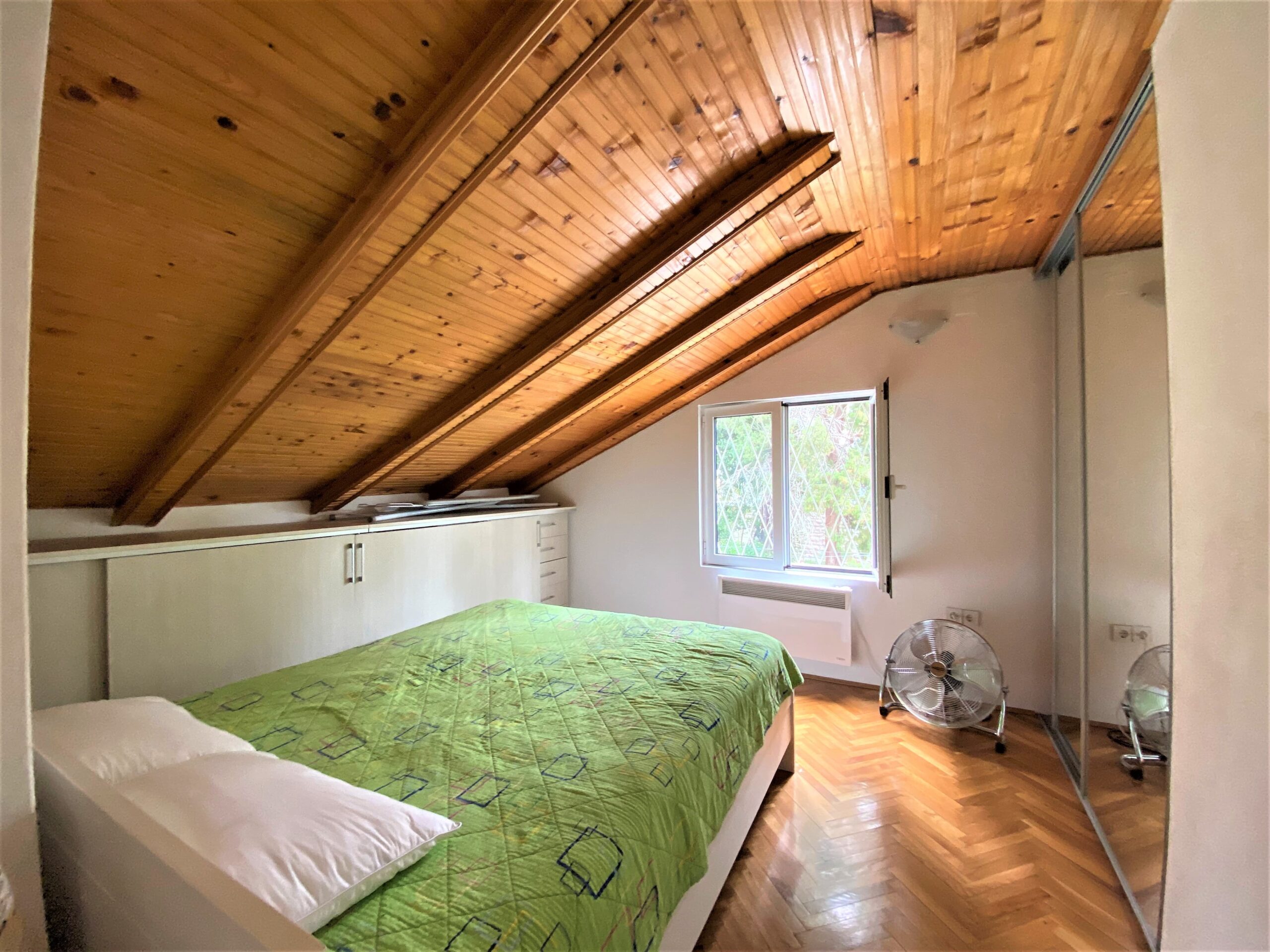 On the ground floor there is a studio (29m2), which consists of a bedroom, a living room, an outdoor summer kitchen and a bathroom. There is a possibility to integrate the summer kitchen and bathroom into the interior of the studio.