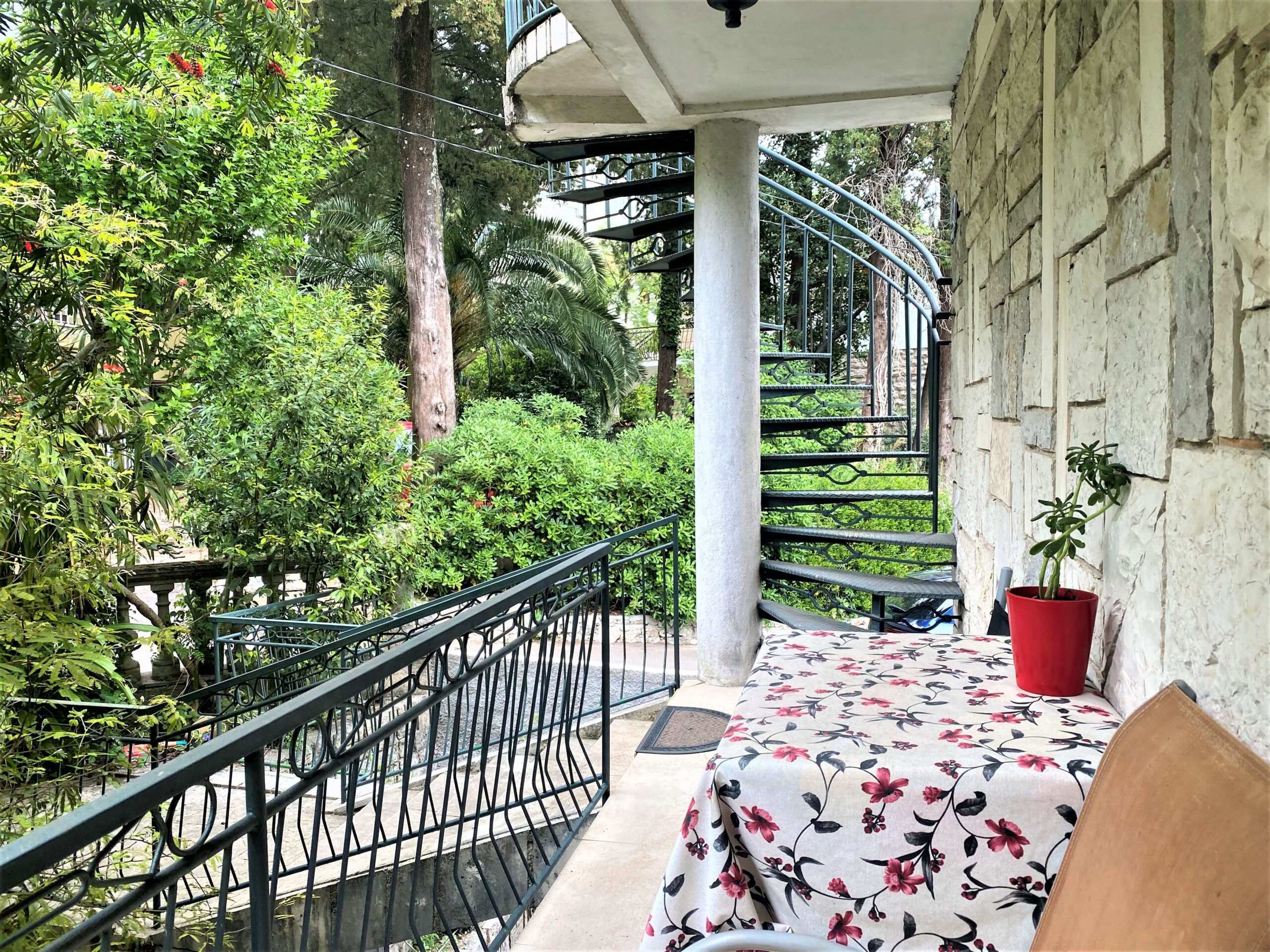 A house with a stone facade on 4 floors, which contains 4 separate apartments with separate entrances and terraces. The house has a spacious garden and yard where it is possible to build a swimming pool. The house is surrounded by greenery, olive trees, kiwis, figs, plums, cherries and various decorative plants. It is located in the very center of Herceg Novi, a few minutes walk from the Old Town.