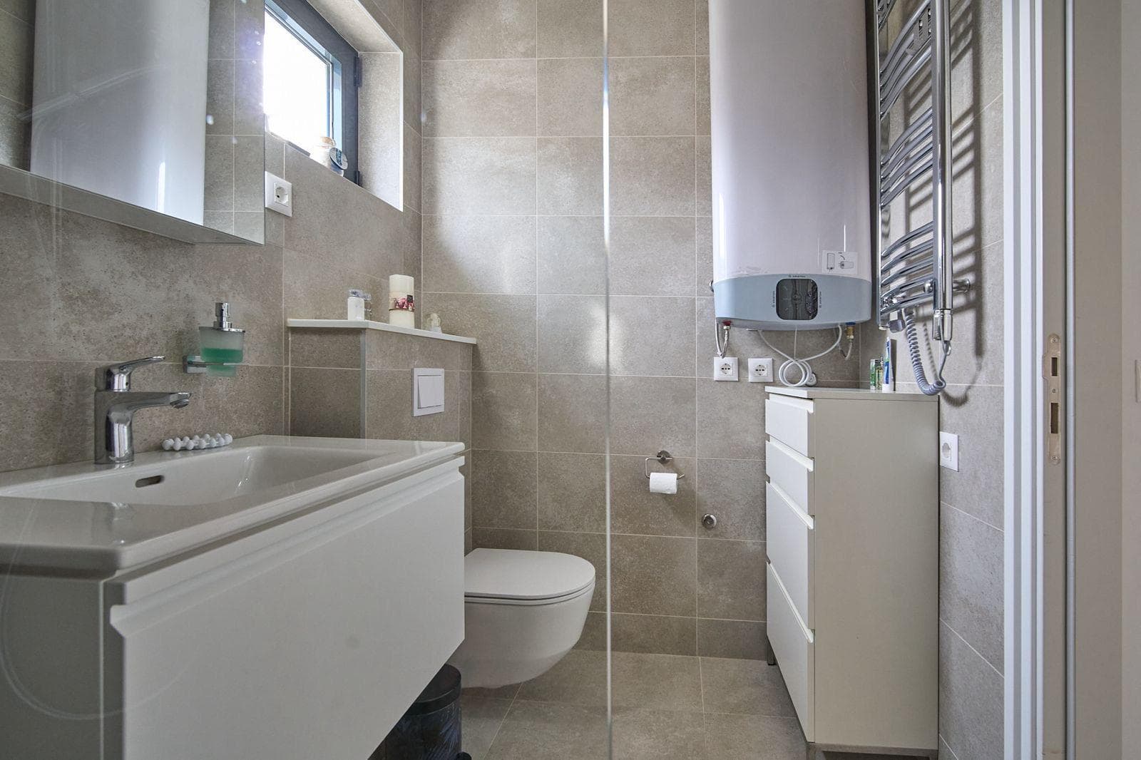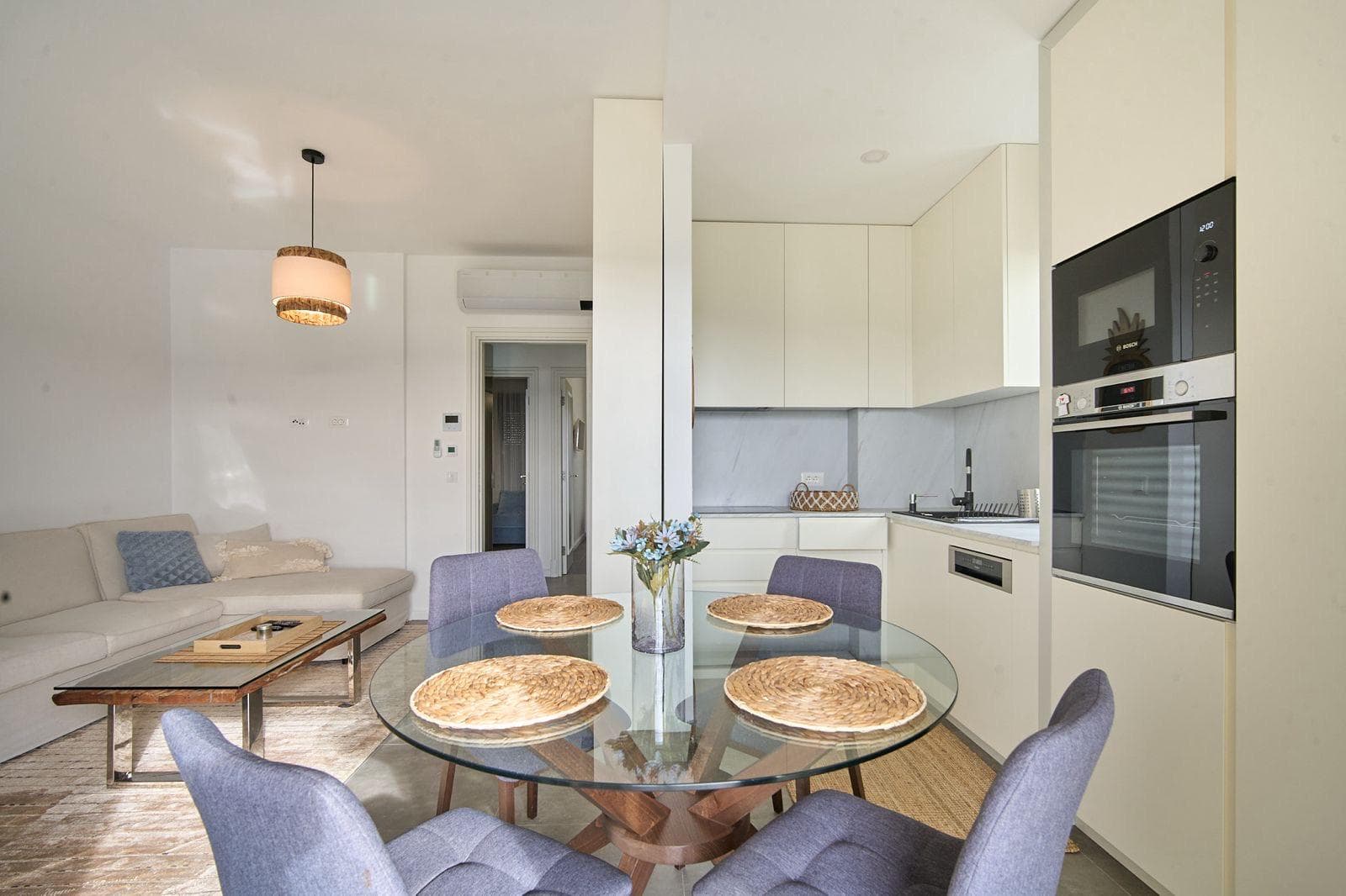 The apartment is within walking distance of all essential amenities, 1.5 km from Tivat Airport, 3 km from the luxury marina Porto Montenegro, and 9 km from Kotor.