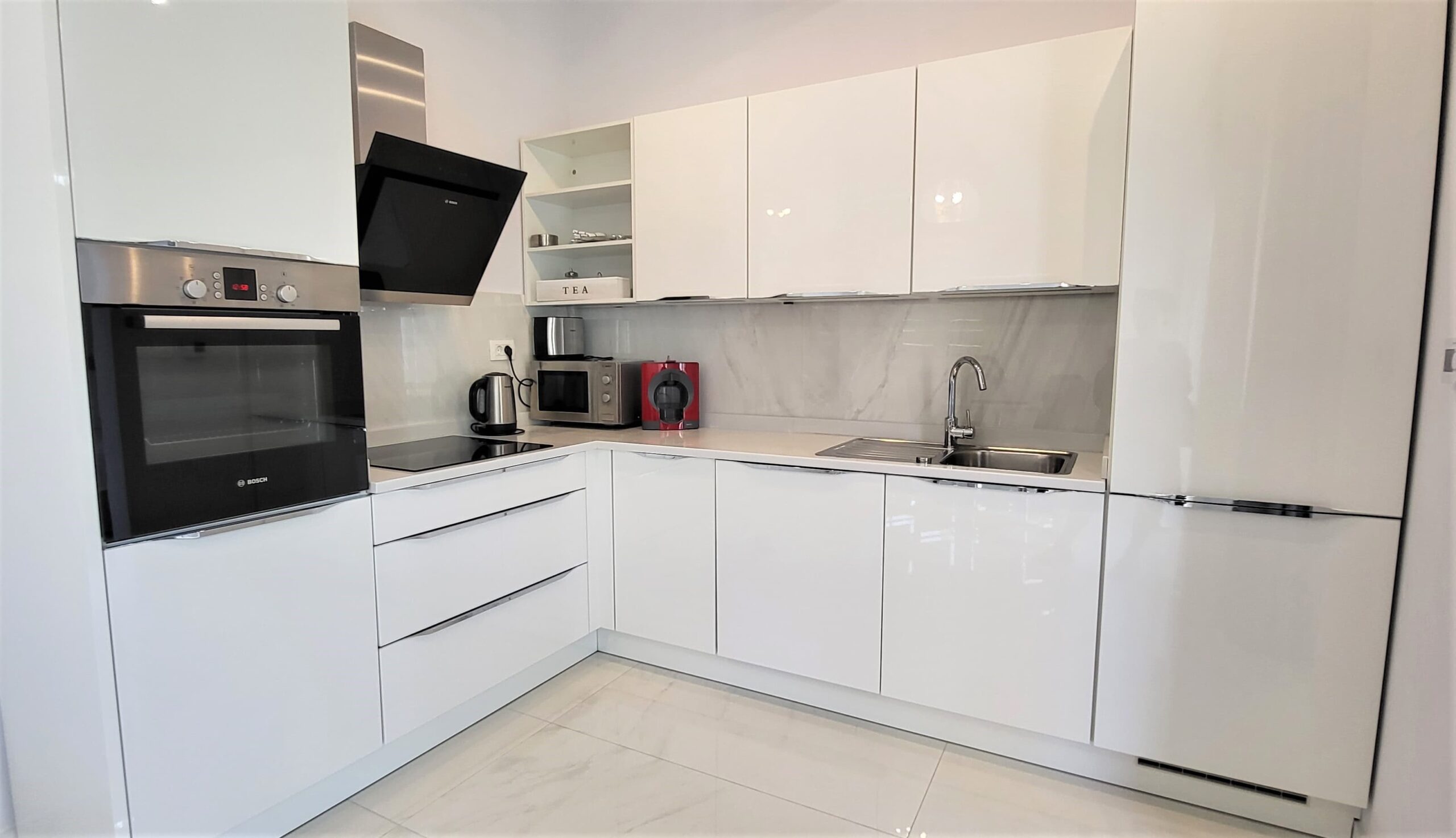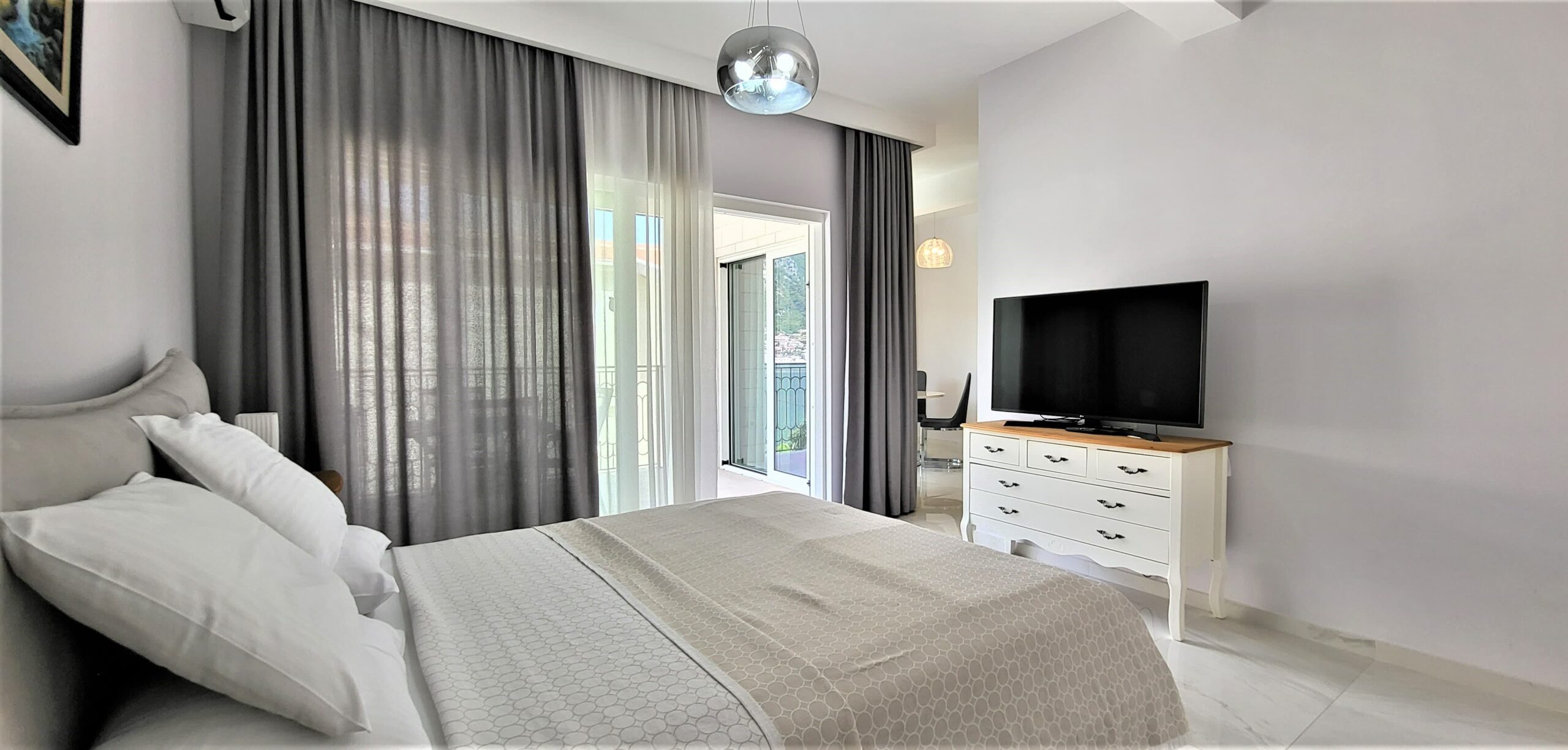 The apartment is furnished to the highest standards.