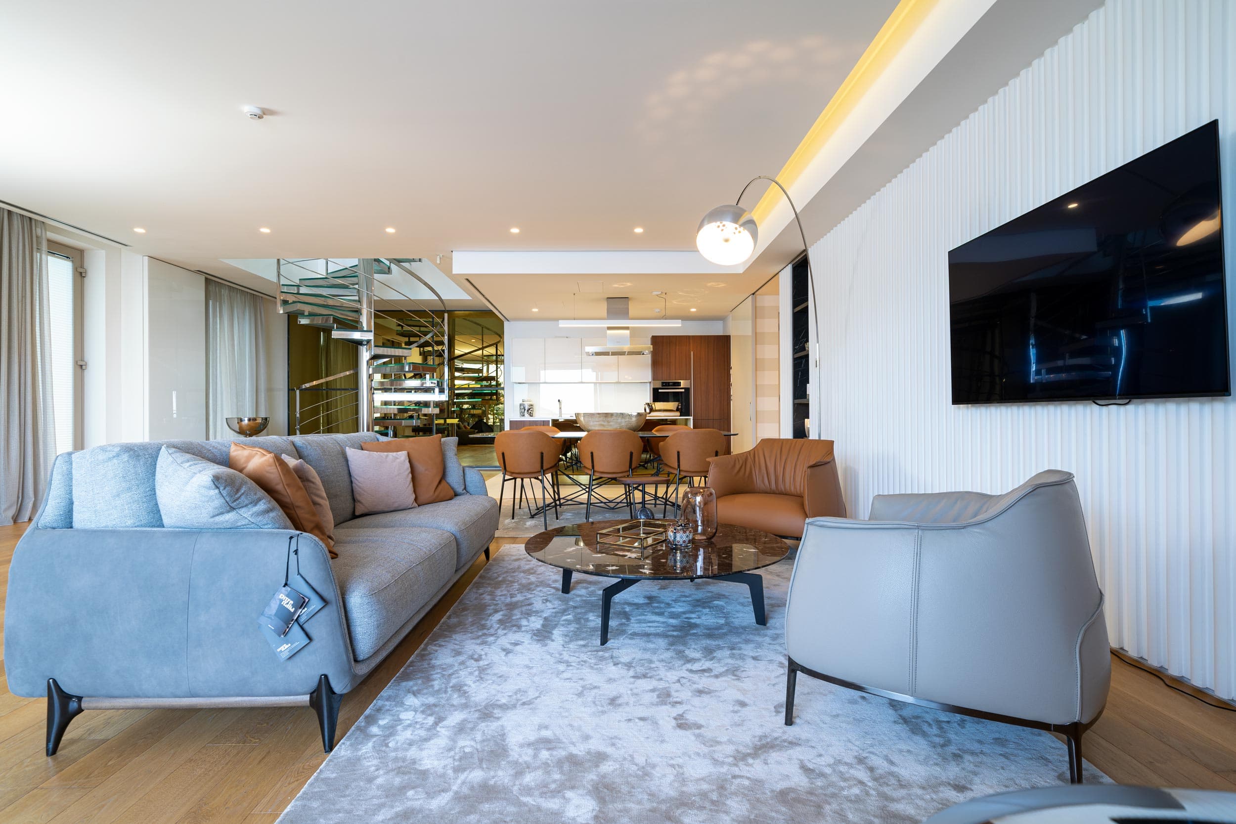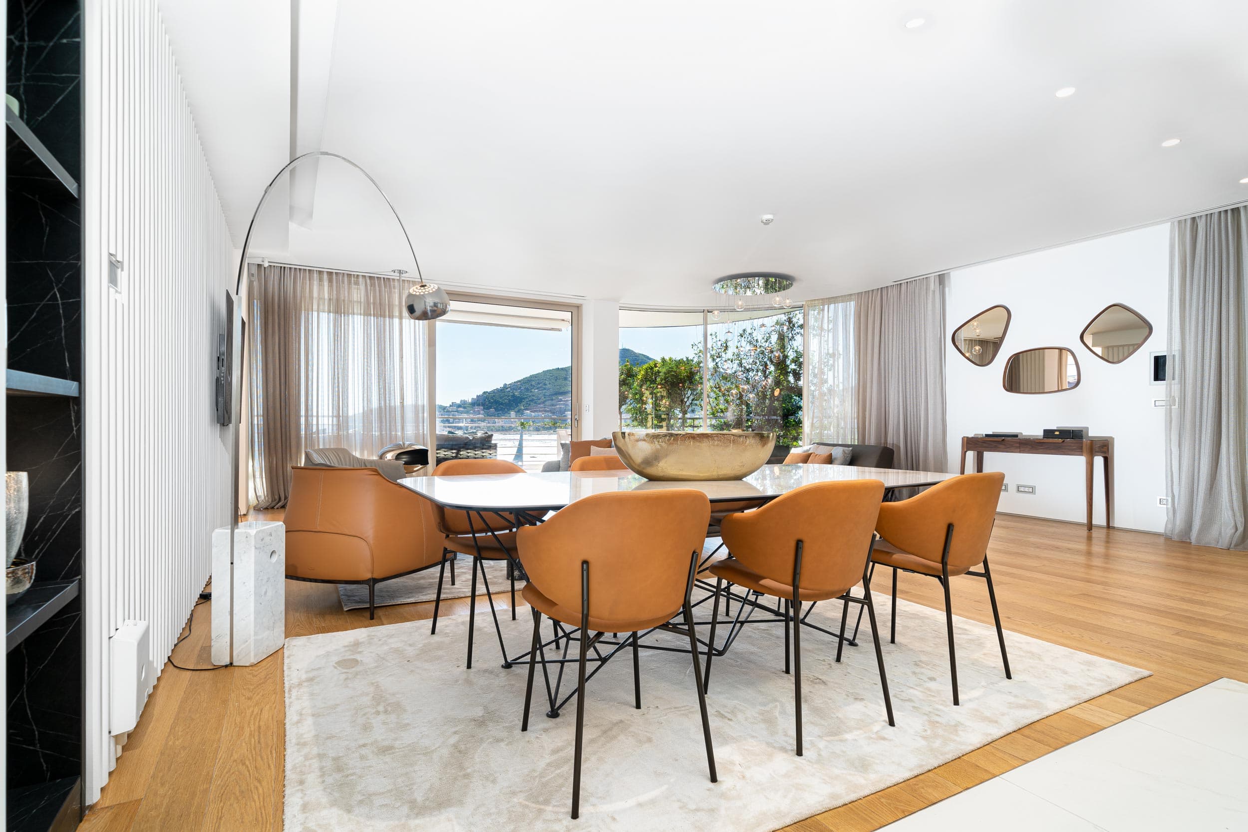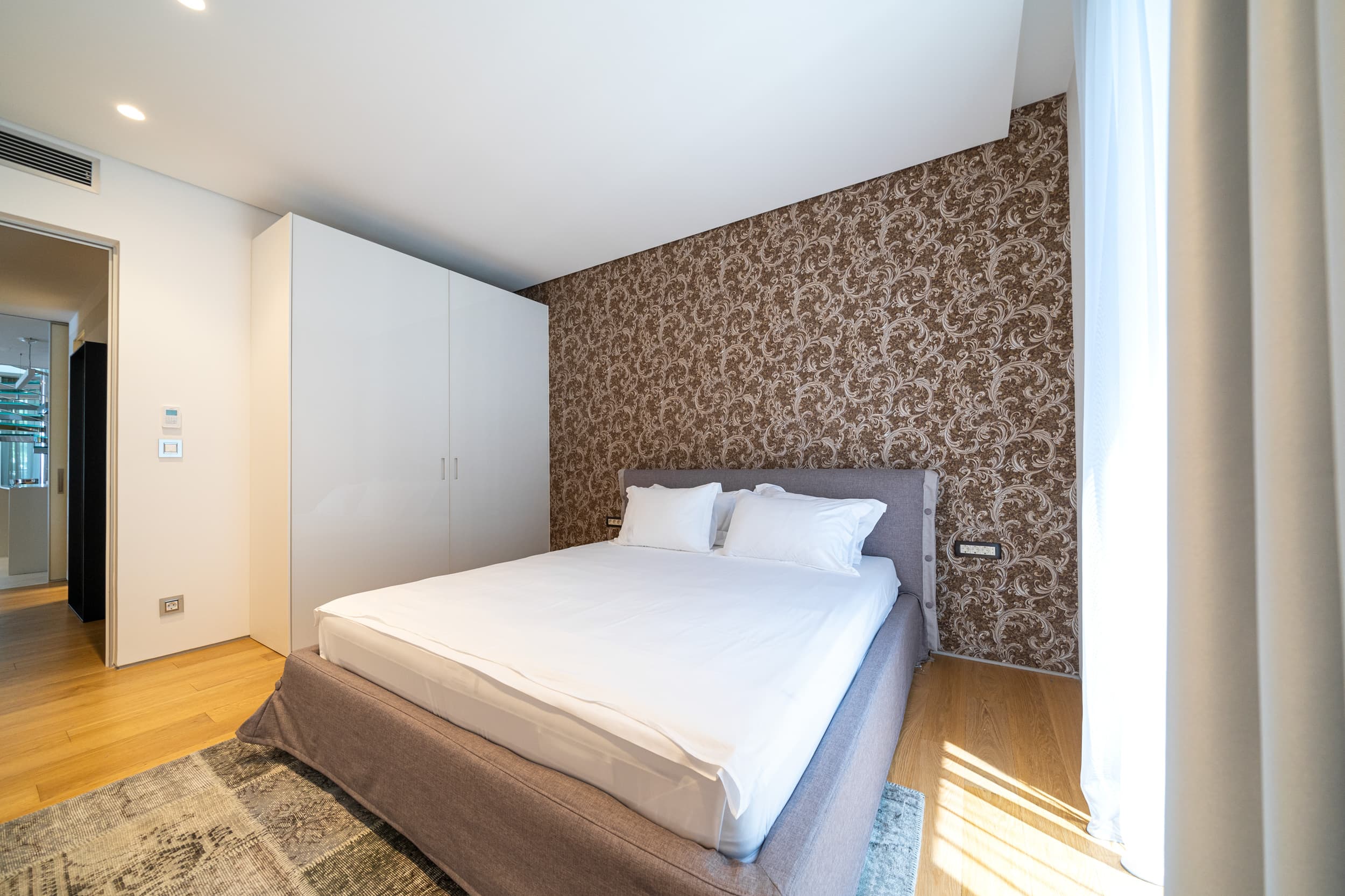 Equipped to the highest standards and competently furnished, this penthouse has a total area of 420m2. The interior space consists of an open-plan living room, 3 bedrooms, 3 bathrooms, of which the master bedroom has its own bathroom, and a laundry room.
