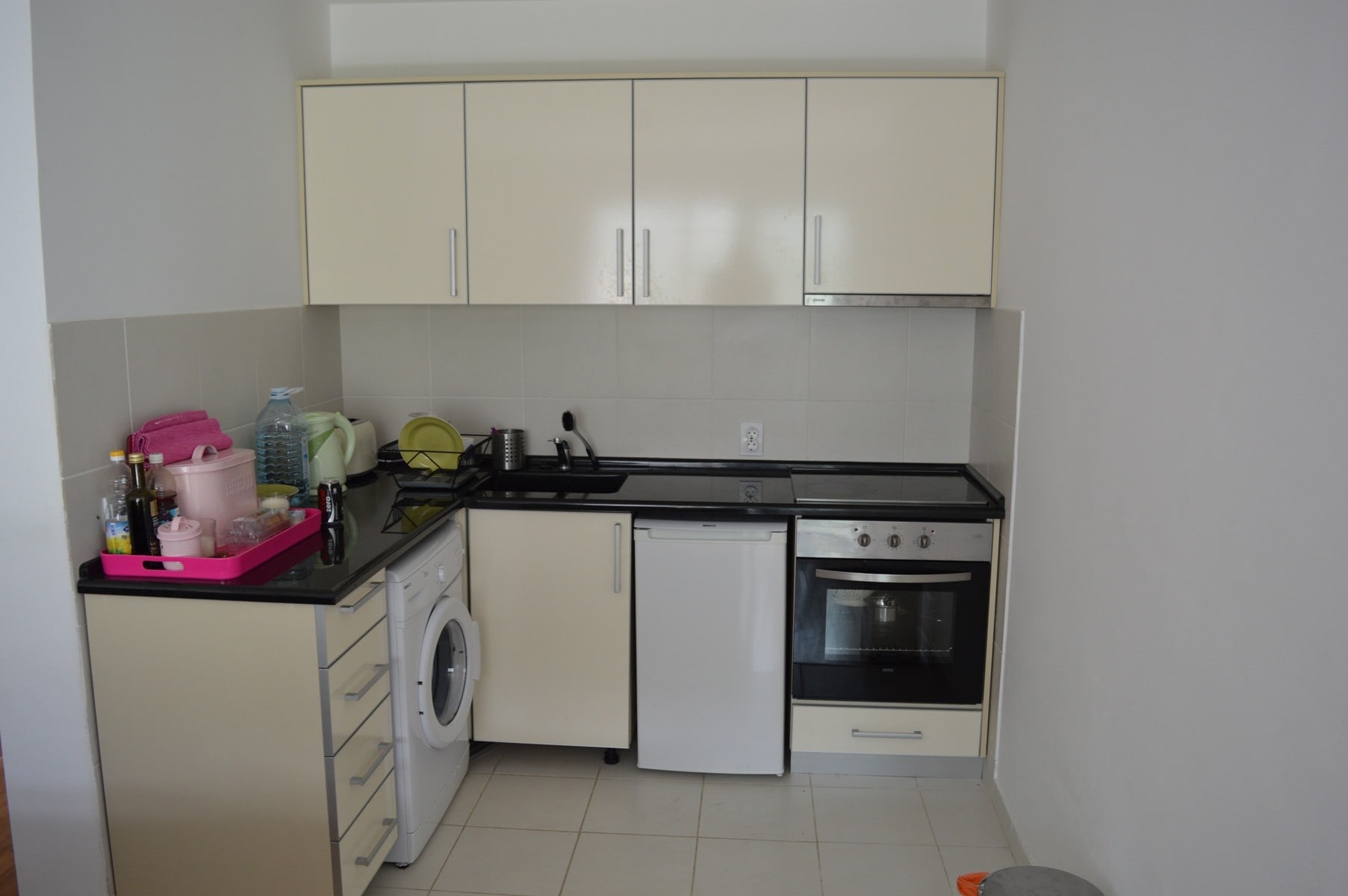 This apartment is situated on the third level of an residential building with a swimming pool.