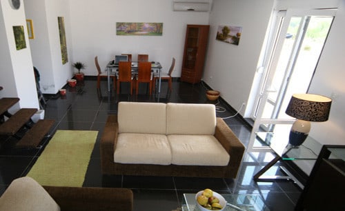 The property is set over two floors and features three bedrooms and two bathrooms with a total living space of 91sqm. The large open plan living and dining area has high quality tiled flooring and is bright with patio doors leading onto a large terrace area. There is a seperate fully fitted kitchen and two fully fitted bathrooms. Bedrooms feature beautiful parquet flooring and air conditioning.