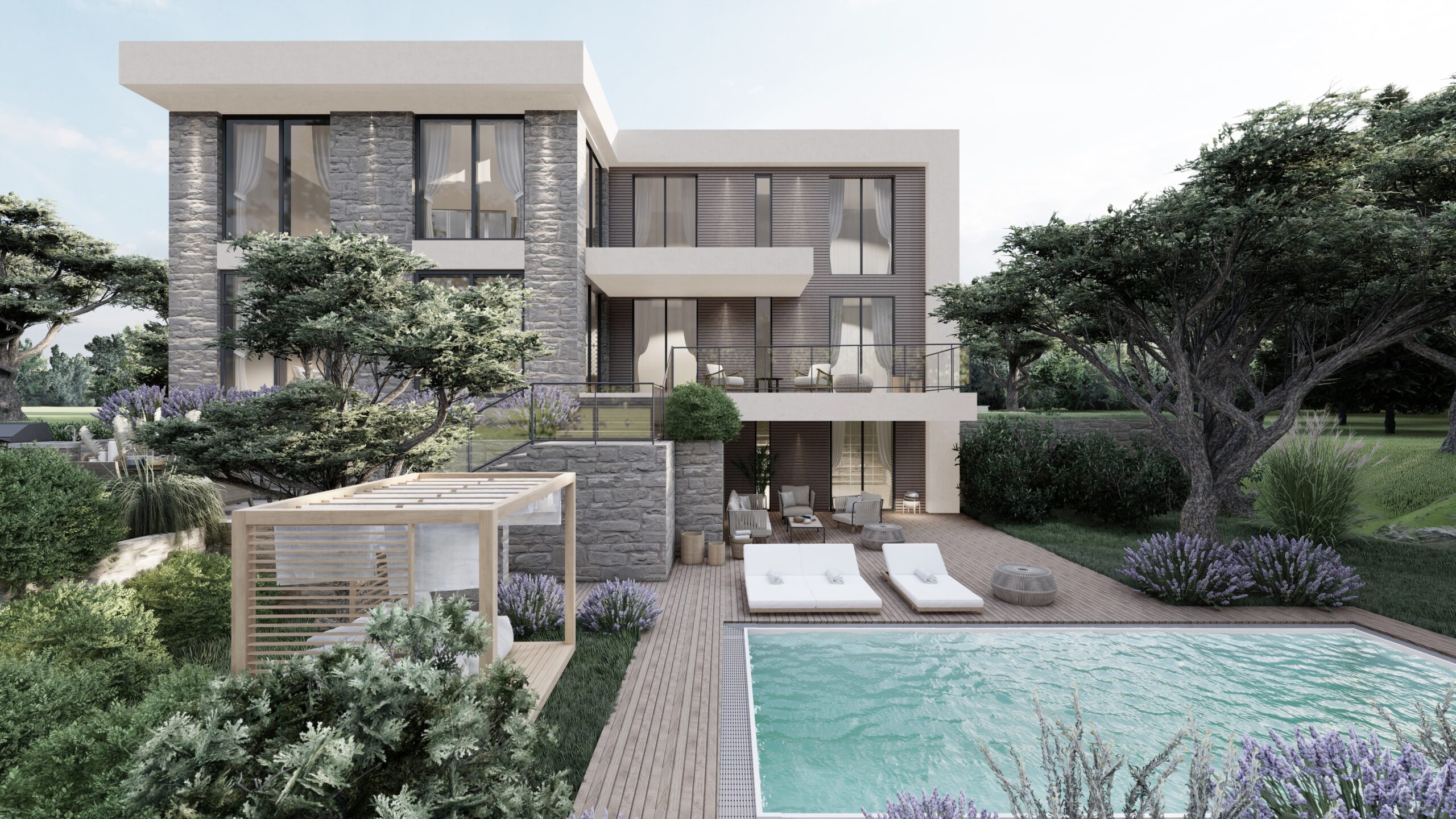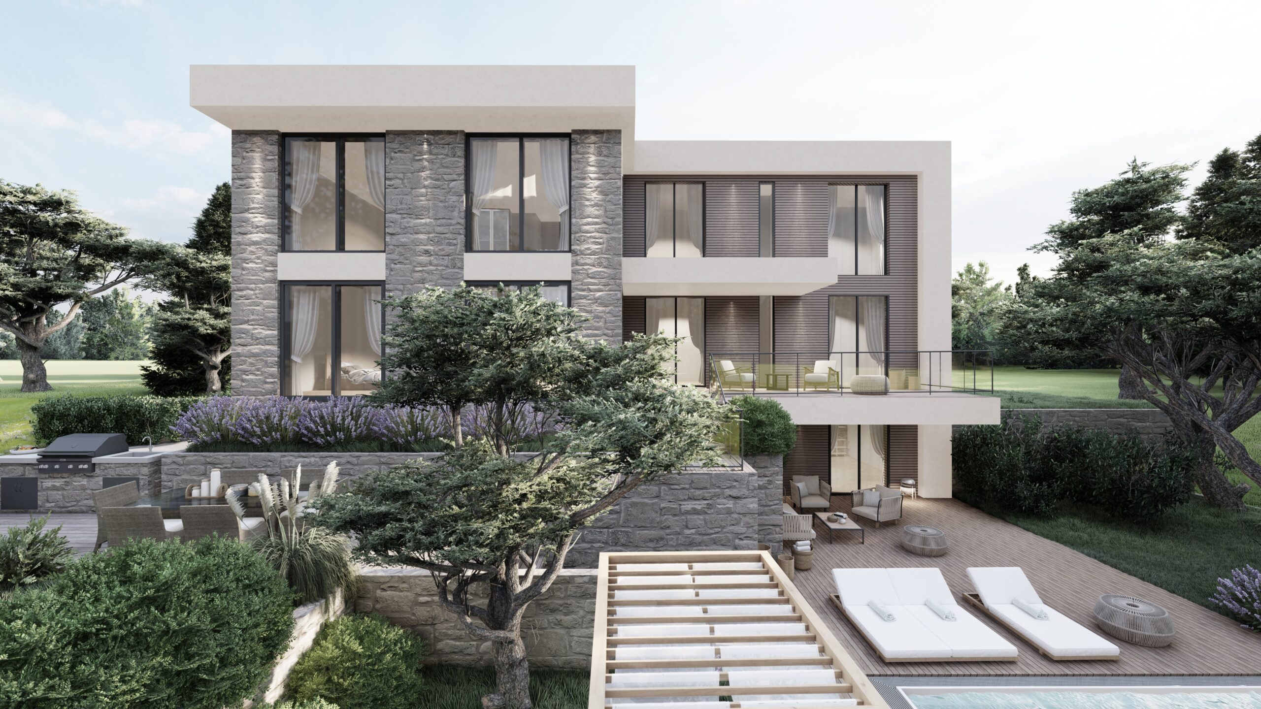 All the villas are positioned on plots of different sizes with landscaped gardens and accompanying facilities.