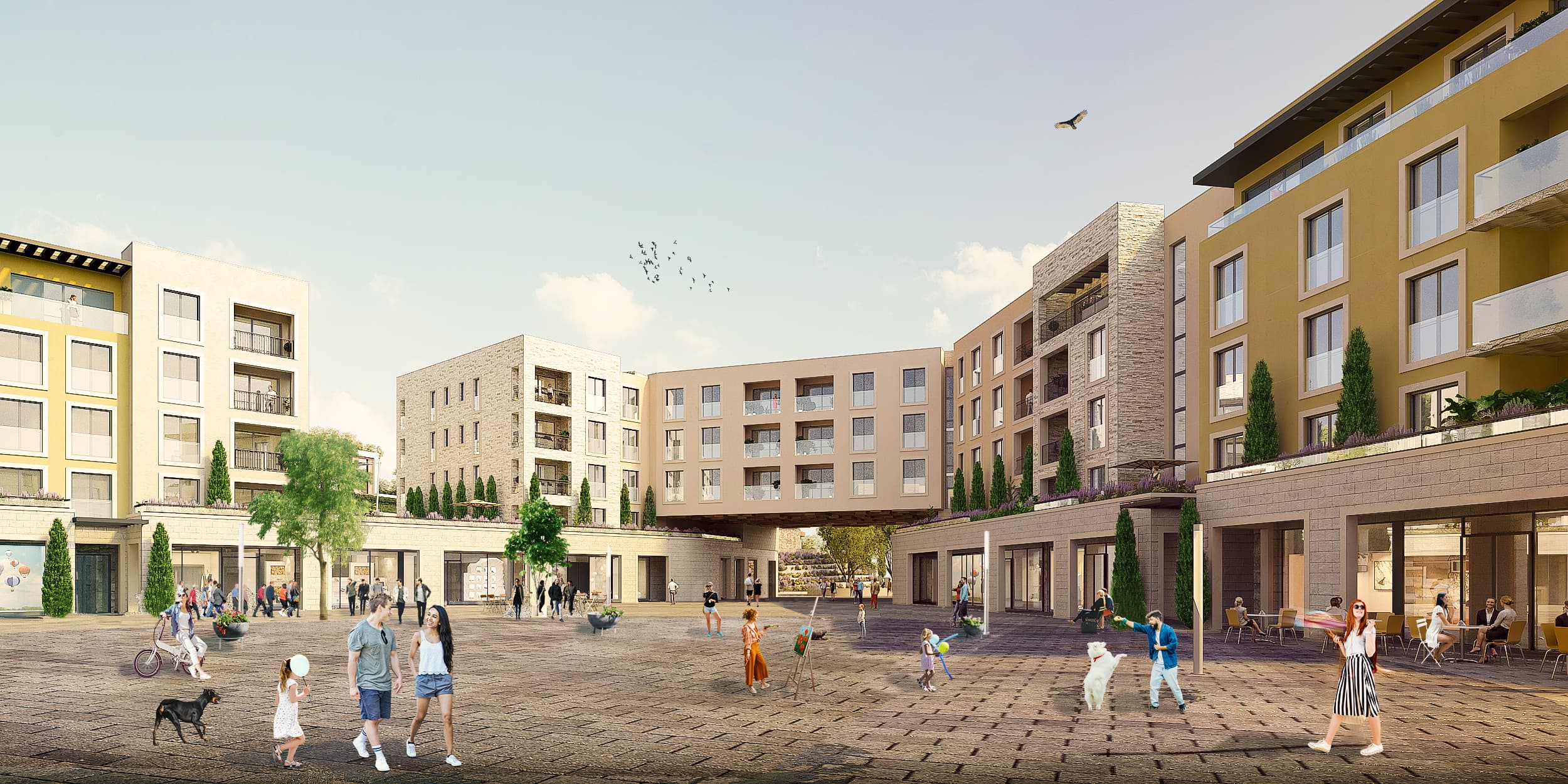 In the village are planned residential buildings and villas, two public squares, and a variety of recreational facilities.