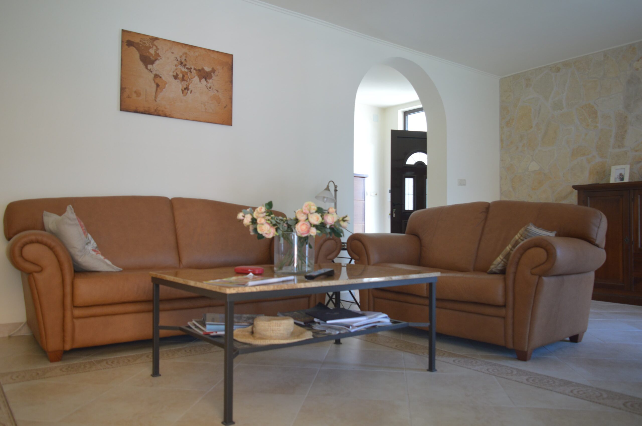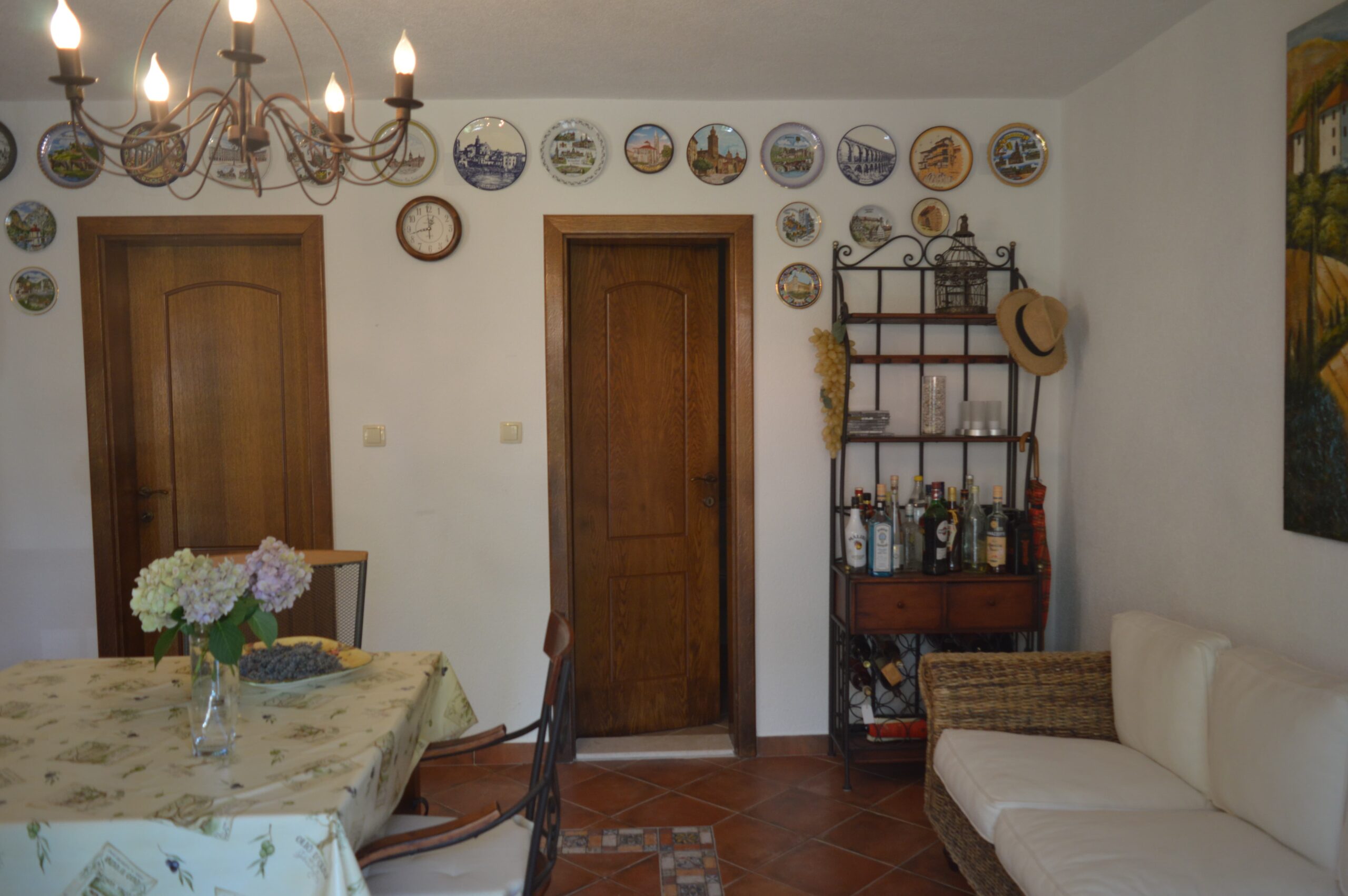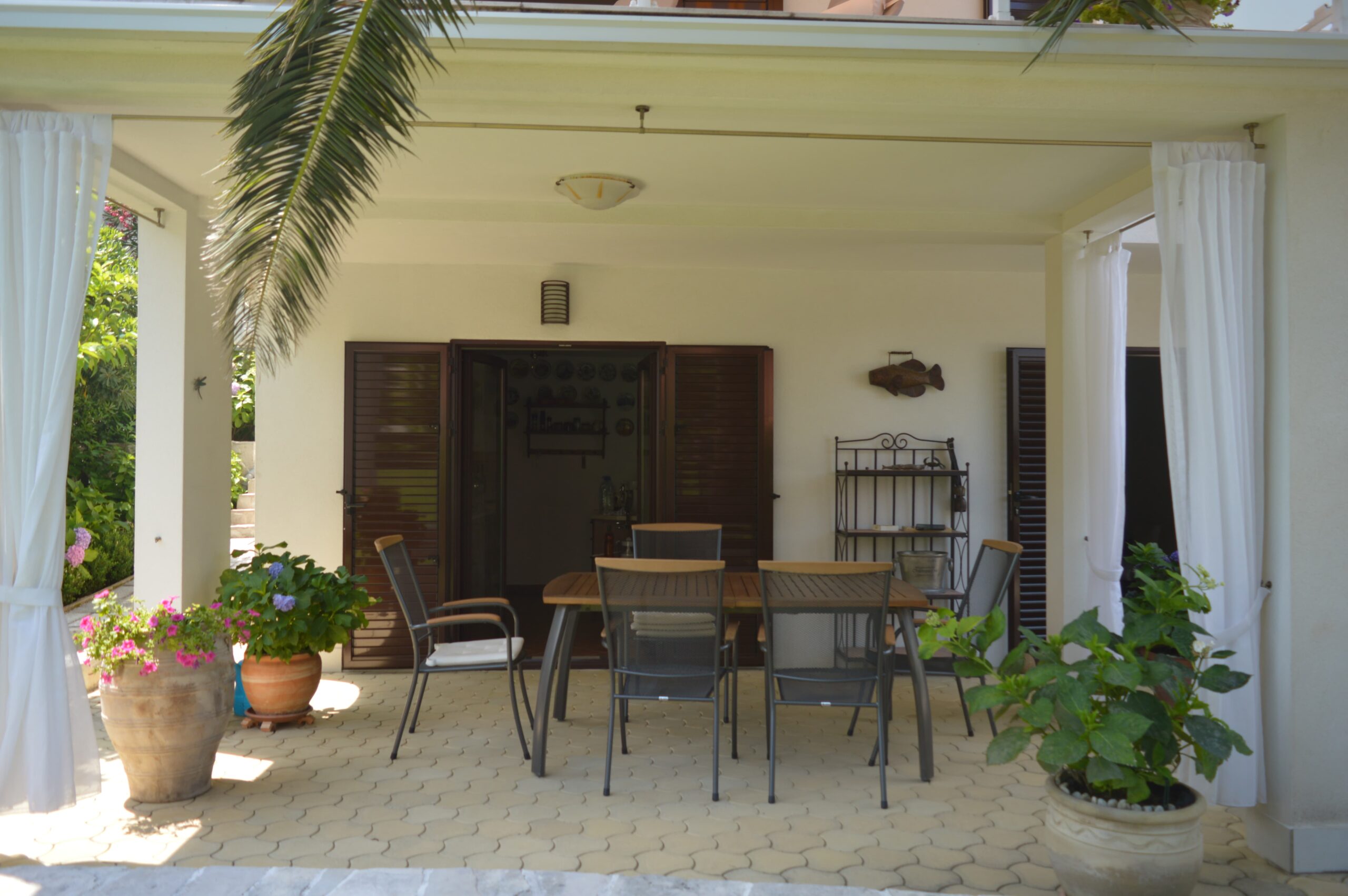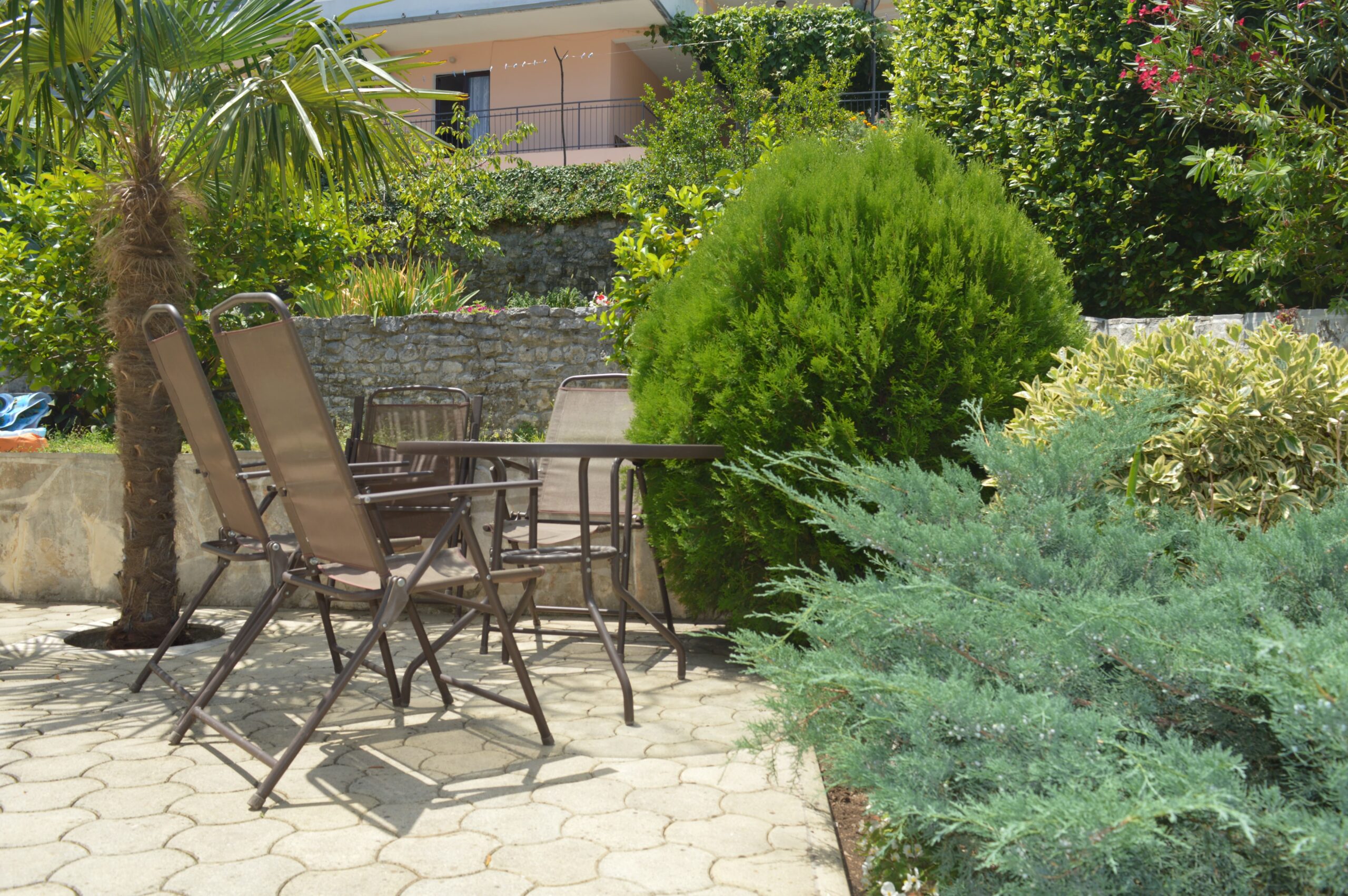 Sastoji se iz prizemlja i dva sprata. Na prizemlju se nalazi kuhinja sa trpezarijom i ostava. Ispred je veranda sa baštenskom garnitutom. Na prvom spratu se nalazi prostrani dnevni boravak sa pogledom na Kotor i more. Zatim, na prvom spratu je kuhinja sa trpezarijom, kupatilo i dvije spavaće sobe. Drugi sprat je poseban stan. Sastoji se od dnevnog boravka, kuhinje i trpezarije otvorenog plana, kupatila i dvije spavaće sobe. Iza kuće se nalazi otvoreni roštilj, za pripremu mediteranskih specijaliteta.