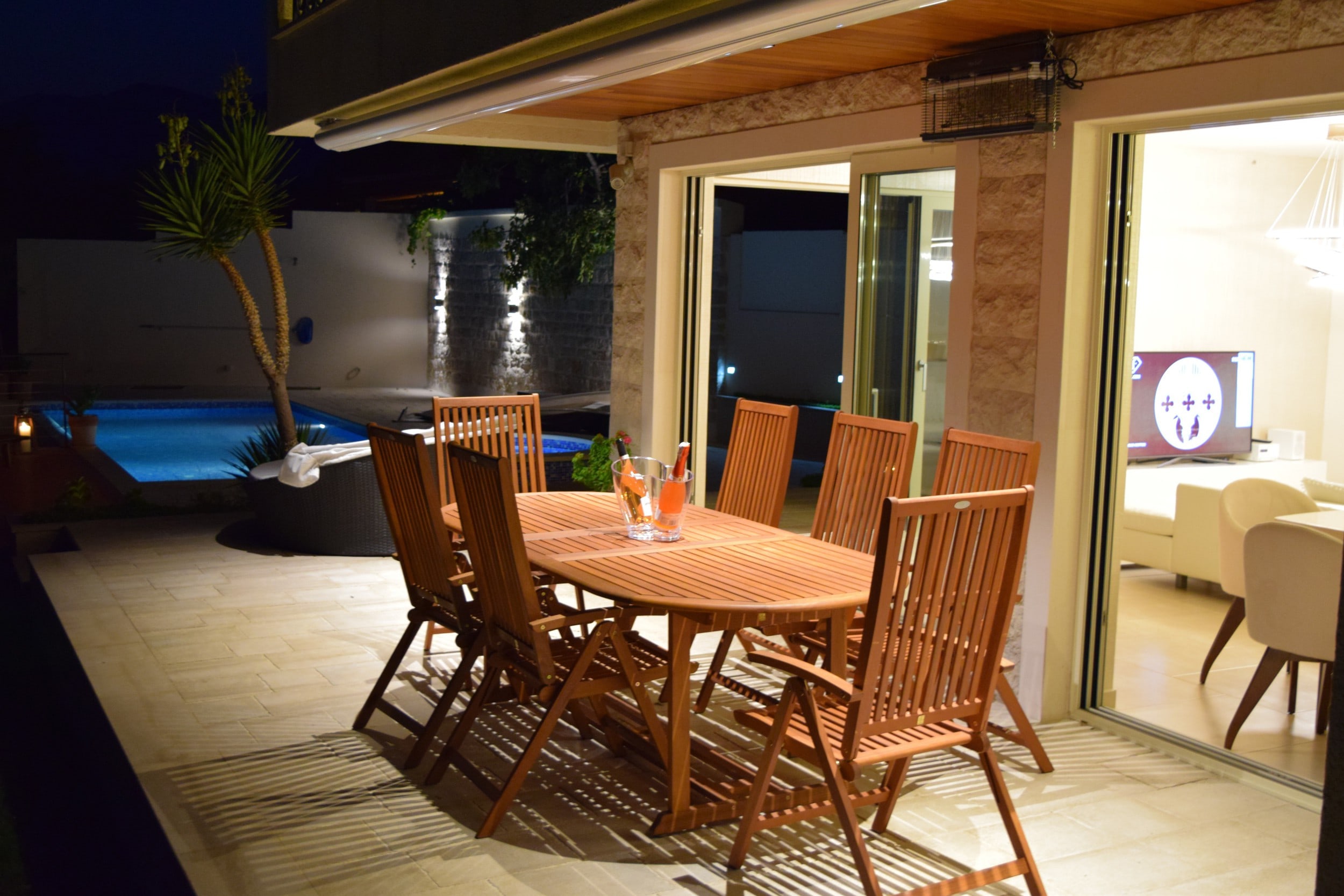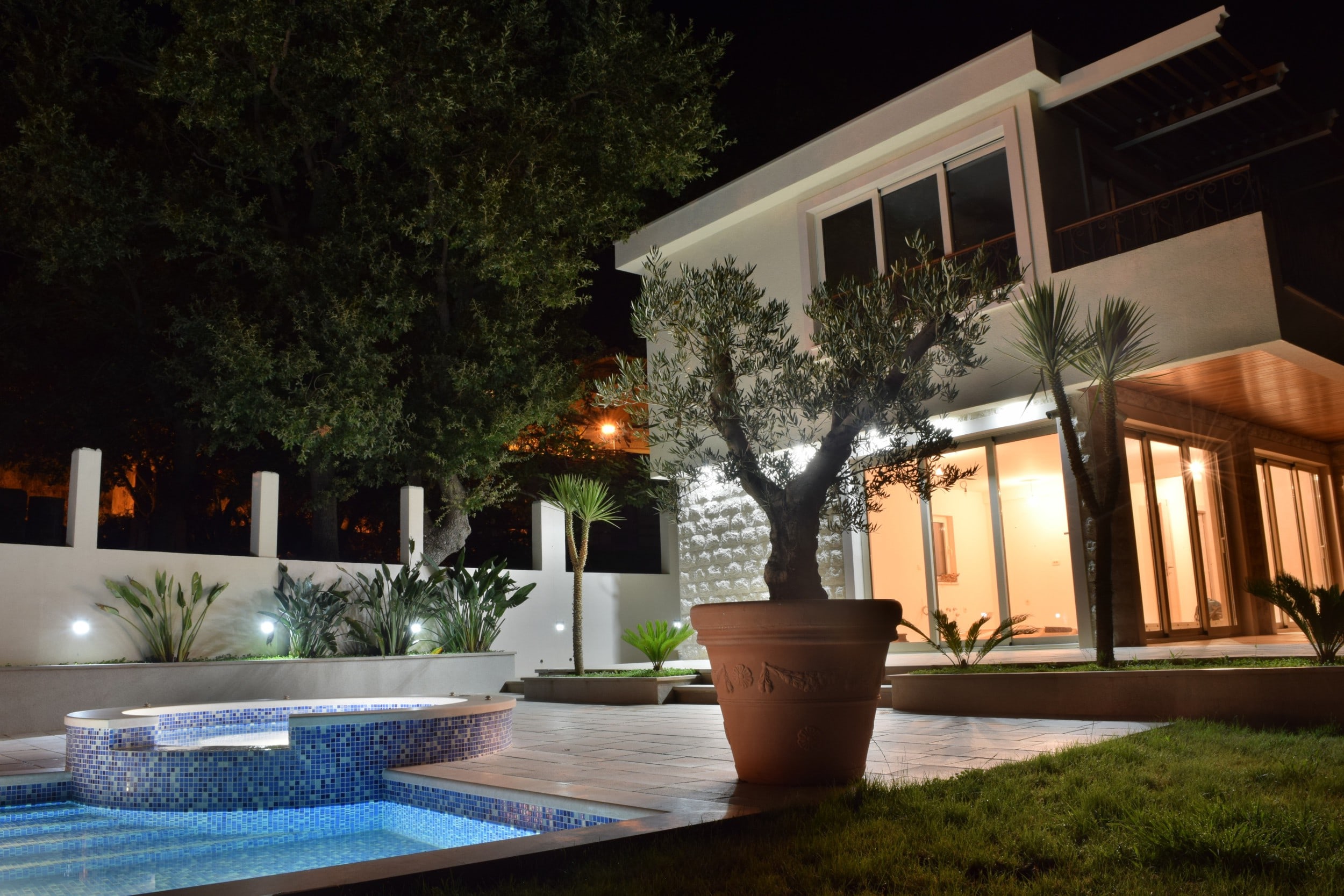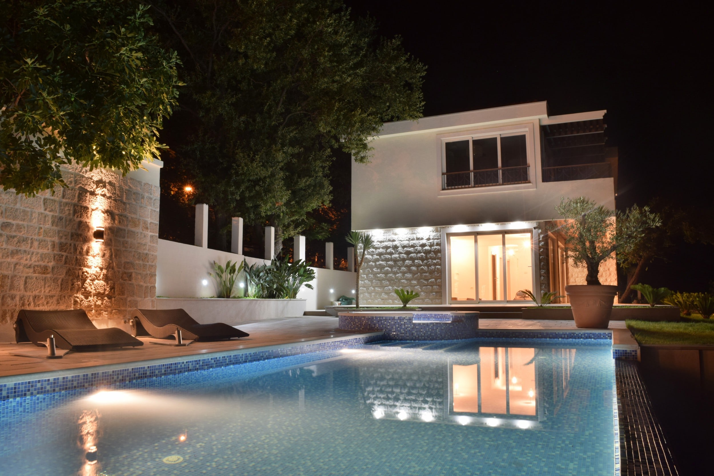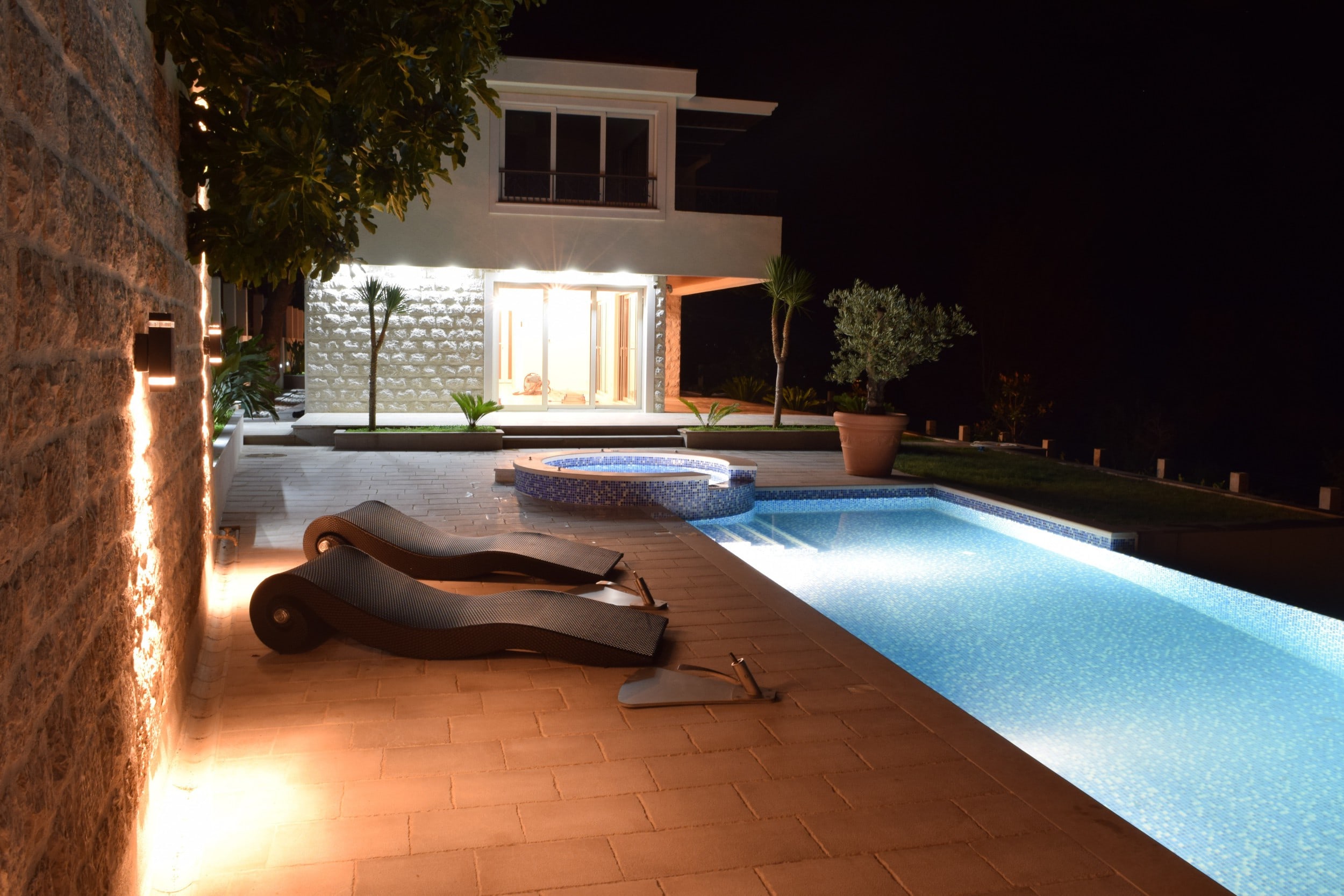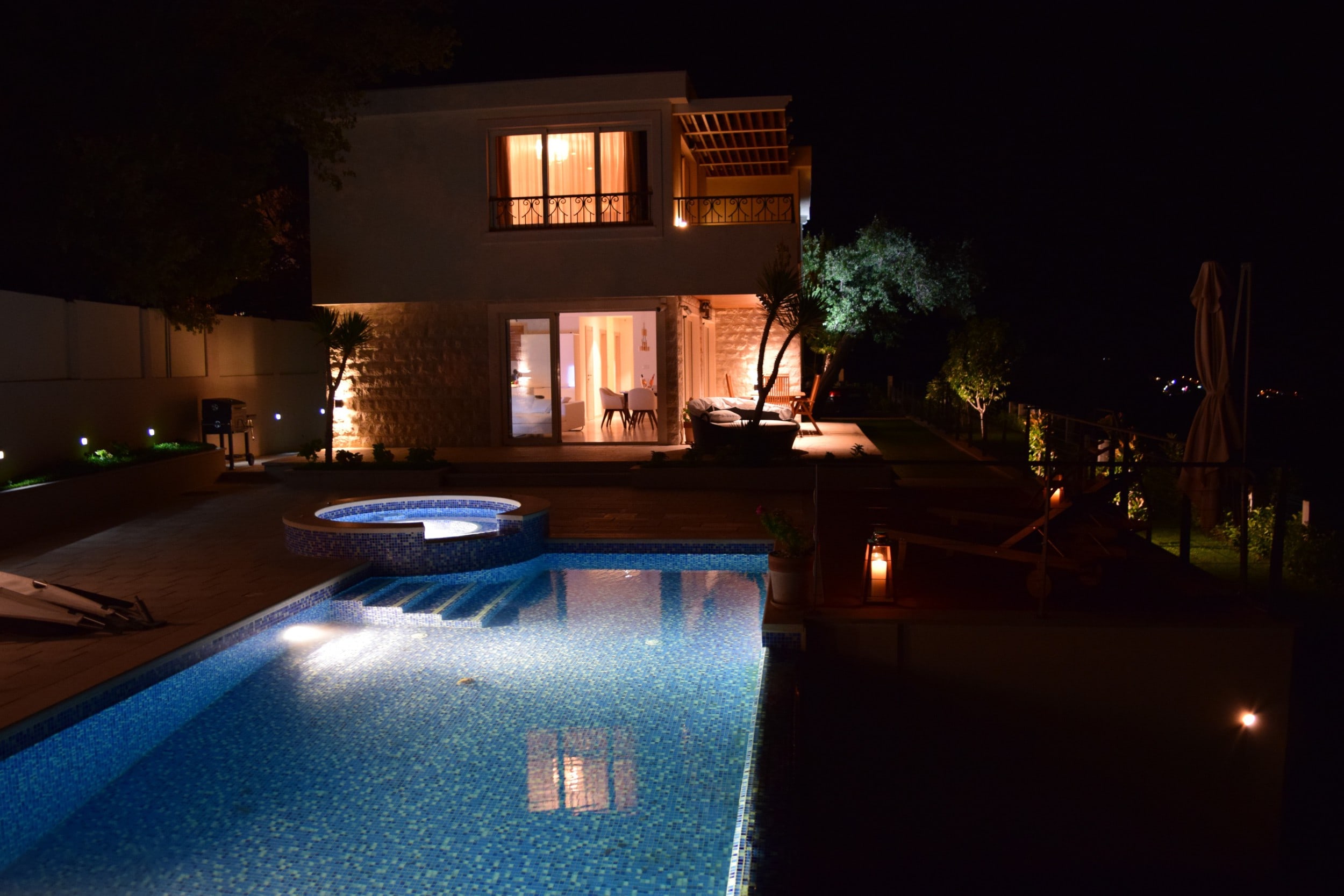 На участке площадью 787 м2 расположена зона барбекю, обогреваемый бассейн 4x9 м бассейн, парковка.