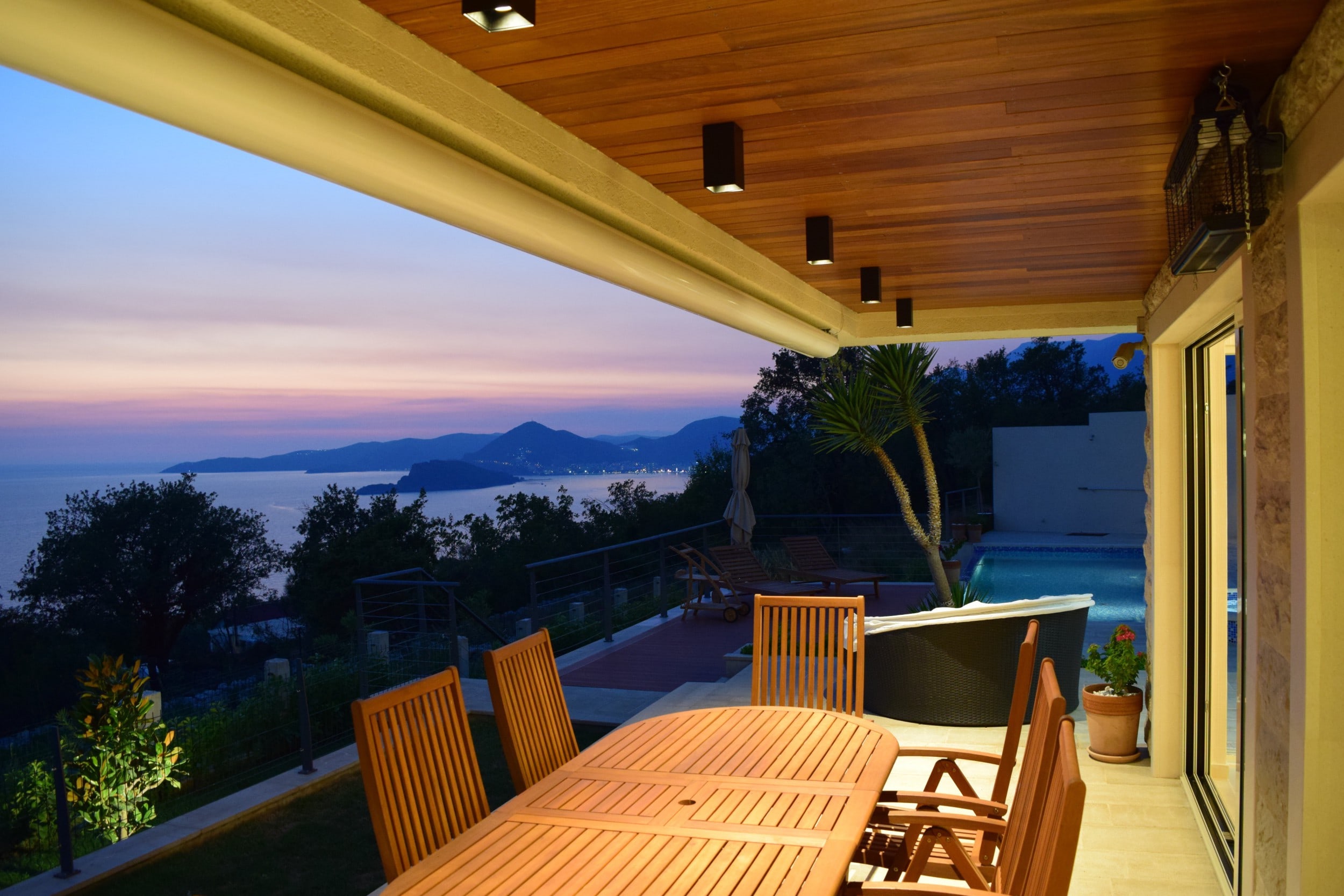 С виллы открывается прекрасный вид на море, остров Св. Никола и Будву