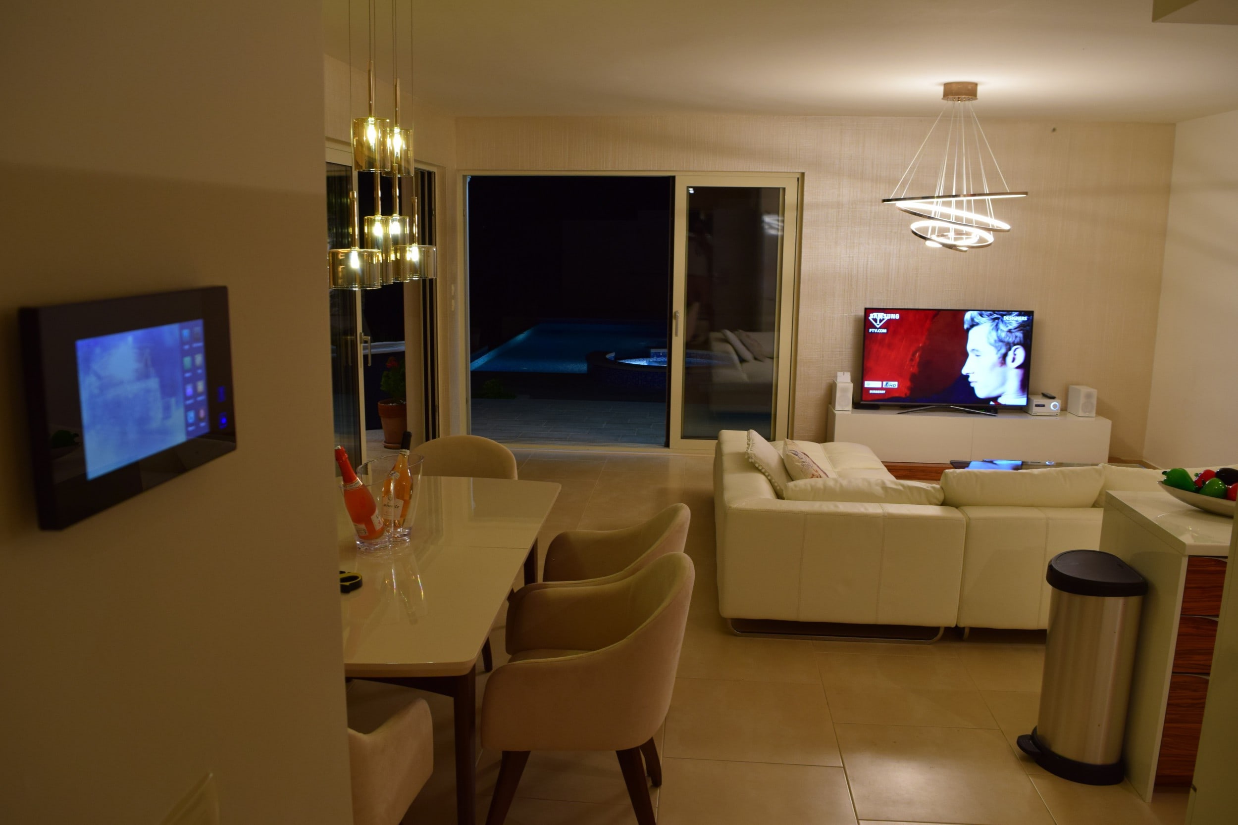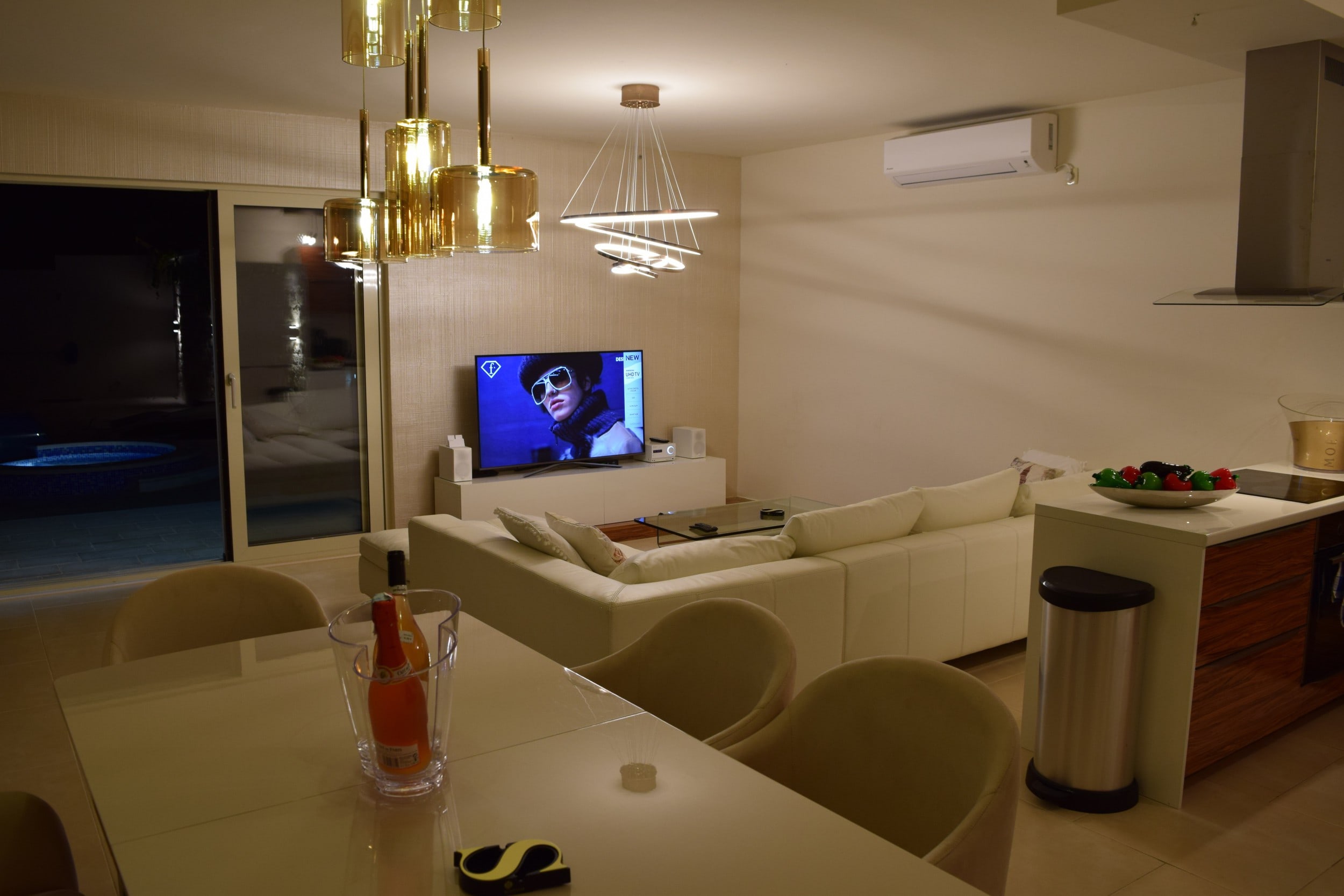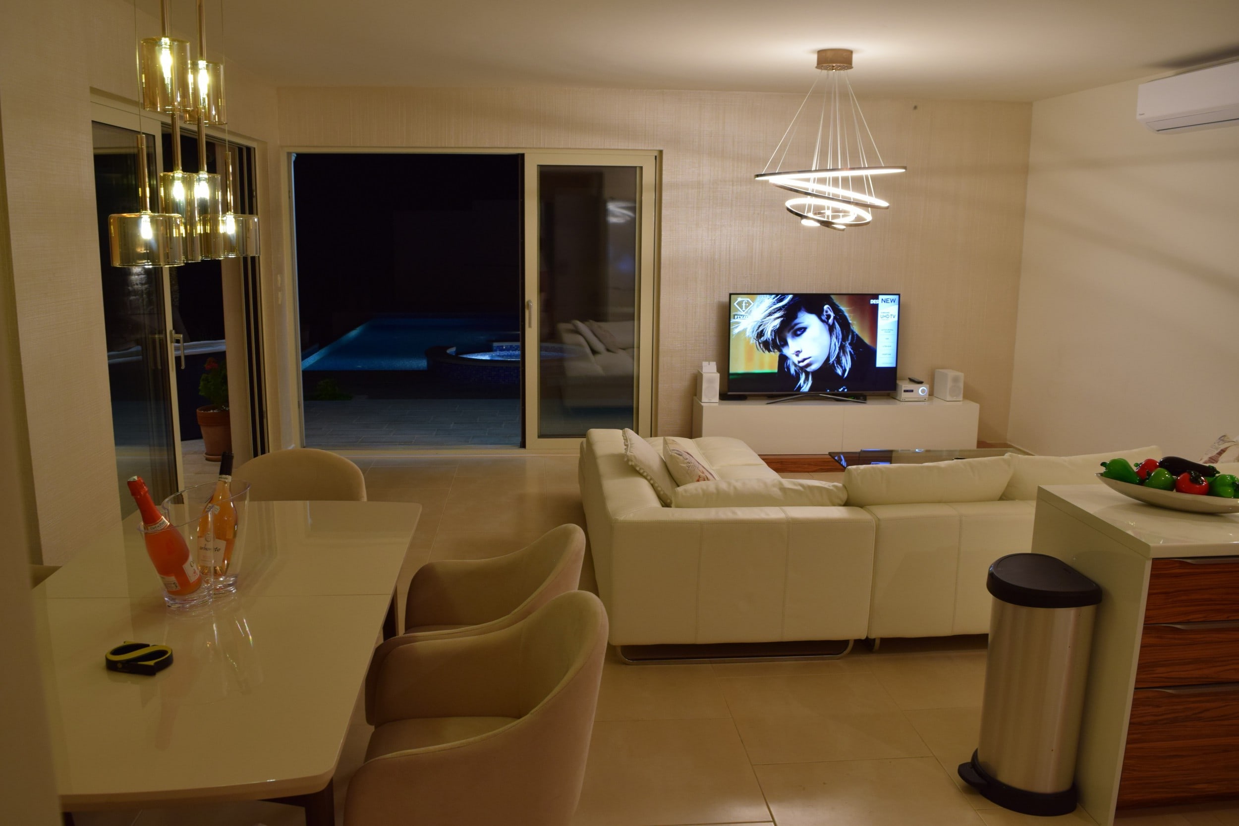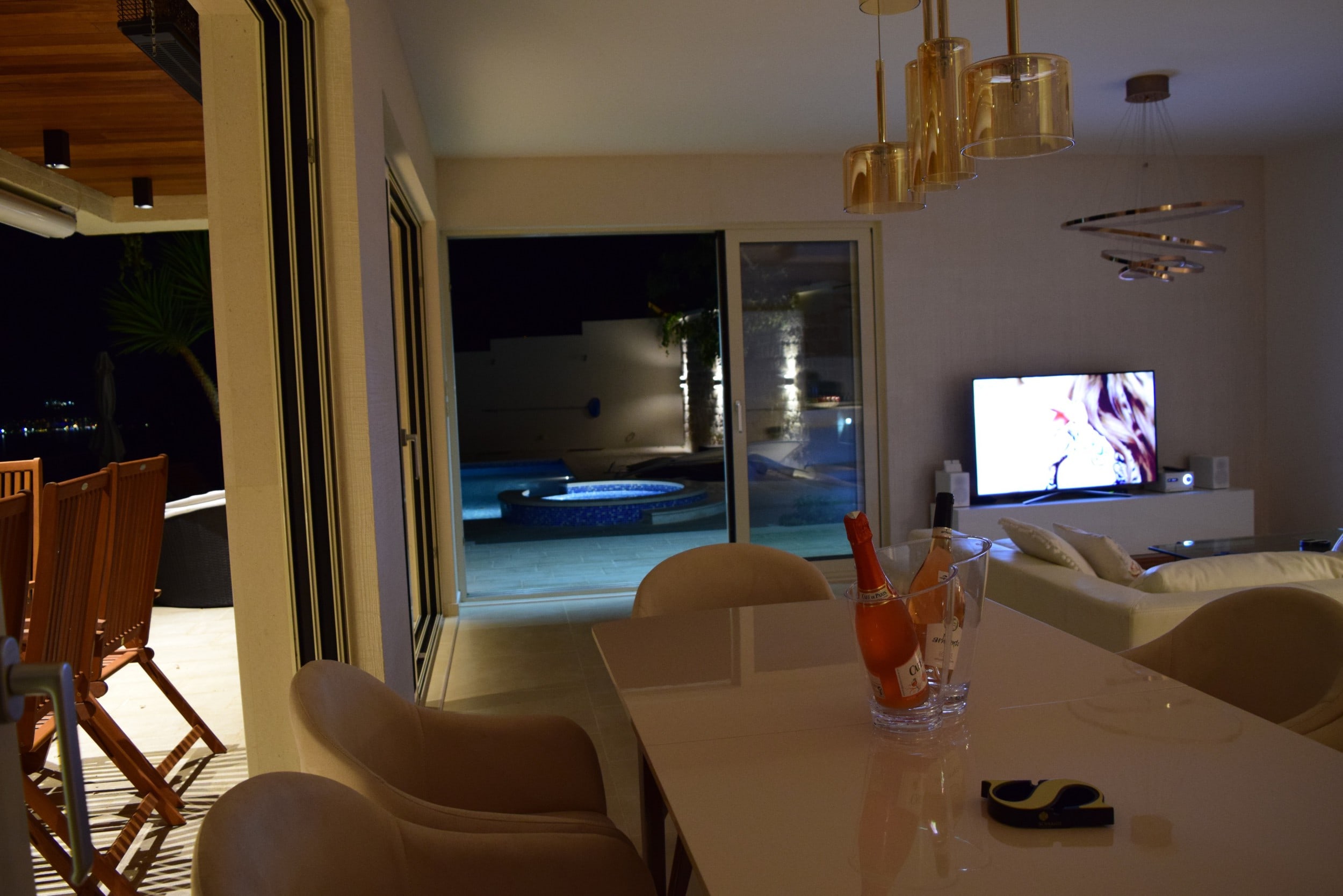 Вилла включает в себя четыре спальни, кухню, столовую, гостиную и четыре ванные комнаты.